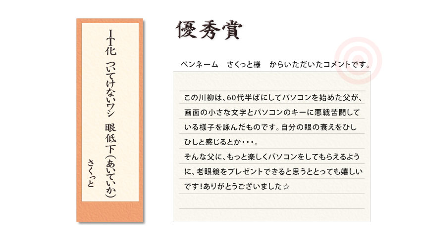 i4U アイフォーユー内「老眼川柳 事務局」メンバーにて選考